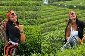 Pınar Altuğ Atacan Rize’de bahçeye girip çay topladı