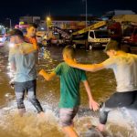 Şiddetli yağışla birlikte göle dönen caddelerde vatandaşlar zor anlar yaşadı
