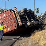 TEM otoyolunda tır devrildi, sürücü hafif yaralandı