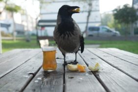 Bu karga çay içip Rize helvası yiyor: Organik gıdaları seviyor
