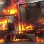 Alev alev yanan tırdan geriye iskeleti kaldı