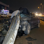Otomobil bariyere saplandı: Sürücü yara almadan kurtuldu
