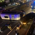 Otomobil ile çarpışan servis minibüsü devrildi: 7 yaralı