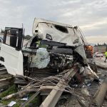 TEM’de tır bariyerlere çarpıp, aydınlatma direklerini devirdi