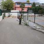Okul bahçelerinde ot biçme çalışması yapılıyor
