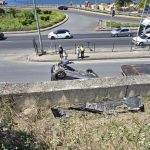 Çalışır vaziyetteki otomobil 6 metreden D-130 Karayolu’na uçtu: 1 yaralı