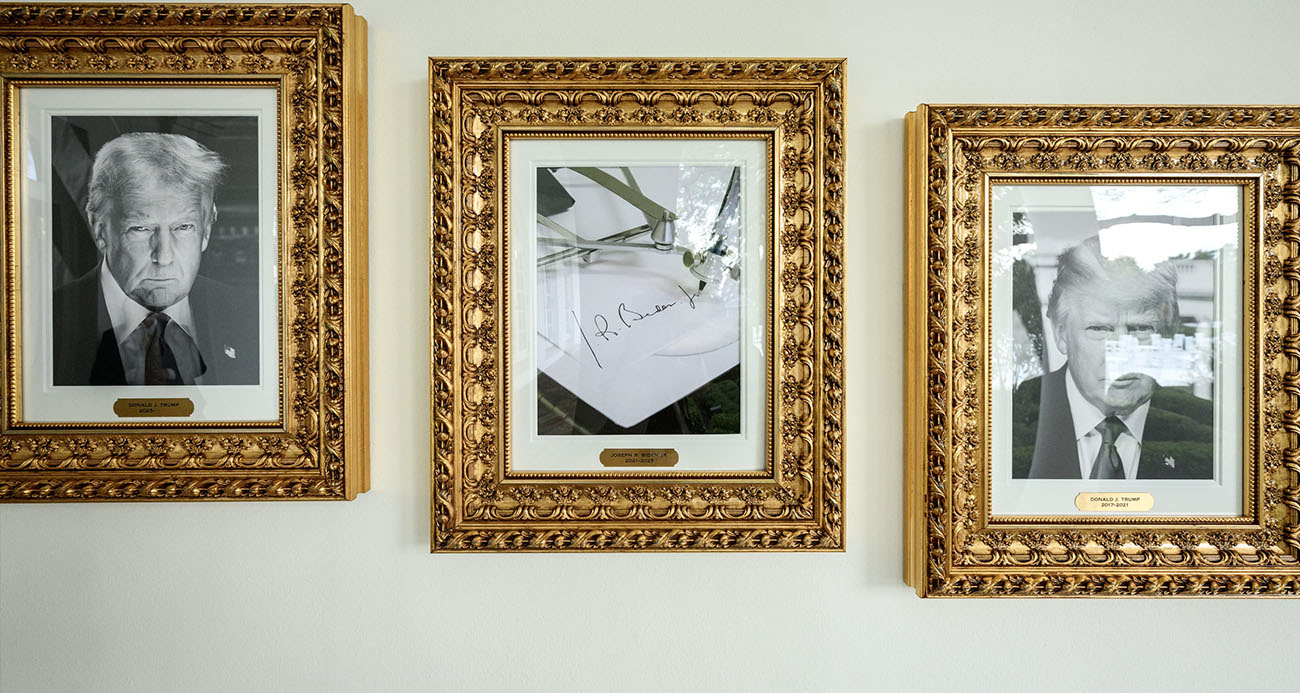Beyaz Saray’ın Batı Kanadı’nın dışındaki yürüyüş yolu boyunca oluşturulan “Başkanlık Şöhret Yolu”nda eski ABD Başkanı Joe Biden’ın portresi yerine otomatik imza makinesinin fotoğrafının kullanılması dikkat çekti.