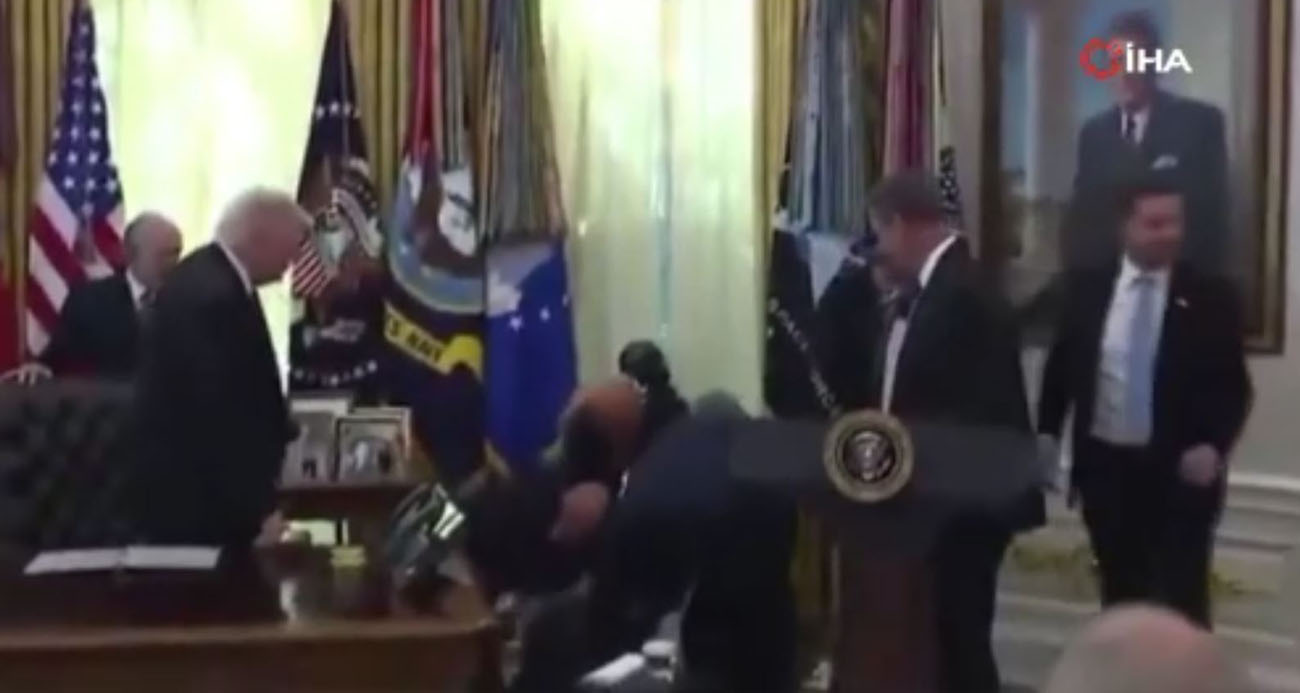 ABD Başkanı Donald Trump’ın, zayıflama ilacı üreticisi “Eli Lilly” ve “Novo Nordisk” adlı şirketlerle yapılan anlaşmaları duyurduğu Beyaz Saray’daki basın toplantısı korku dolu anlara sahne oldu. Trump’ın ardından söz alan Eli Lilly CEO’su David Ricks’in konuşma yaptığı sırada, Novo Nordisk’in Küresel Marka Direktörü Gordon Findlay aniden fenalaştı. Yere düşmek üzere olan Findlay’a ilk müdahaleyi orada bulunan Medicare ve Medicaid (CMS) Direktörü Dr. Mehmet Öz yaparken, Beyaz Saray yetkililerinin canlı yayını aniden keserek Oval Ofis’teki basın mensuplarını salondan çıkarması dikkat çekti.