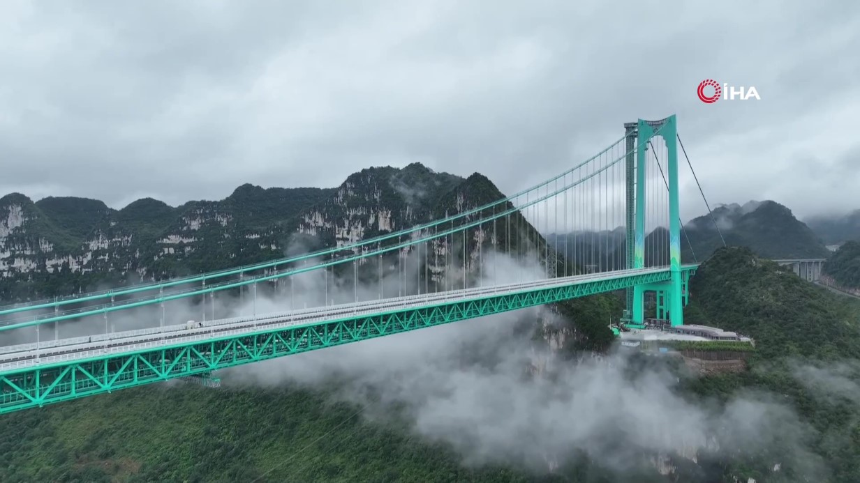 Çin’in Guizhou eyaletinde inşa edilen ve 2 bin 890 metre uzunluğunda olan dünyanın en yüksek köprüsü, 3 yıllık çalışmanın ardından trafiğe açıldı.