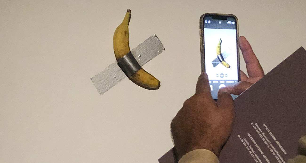 Cattelan’ın muz eseri, 2019’da ilk kez sergilendiği ABD’nin Florida eyaletinde yer alan Miami’deki Art Basel’de 120 bin dolara satılmıştı. Satışın ardından performans sanatçısı David Datuna muzu yemiş ve yerine hızla yenisi konulmuştu. 2023’te ise Güney Kore’deki Leeum Sanat Müzesi’nde ise bir öğrenci, aç olduğunu söyleyerek duvardaki sanat eserini yemişti. Kasım 2024’te ise Çinli koleksiyoncu ve kripto para platformunun kurucusu Justin Sun, “Comedian” adlı muz eserini ABD’de yapılan açık artırmada 6.24 milyon dolara satın almış, daha sonra yemişti.
