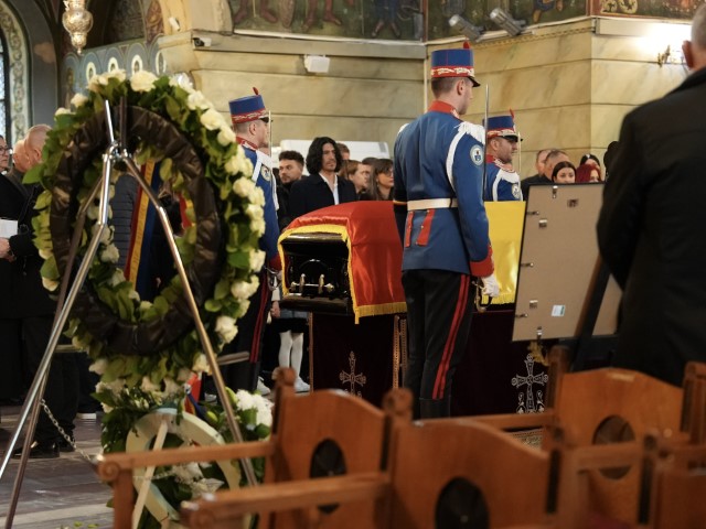 Mircea Lucescu’nun oğlu Razvan Lucescu törende uzun süre tabutun beklerken, taziyeleri kabul etti.
