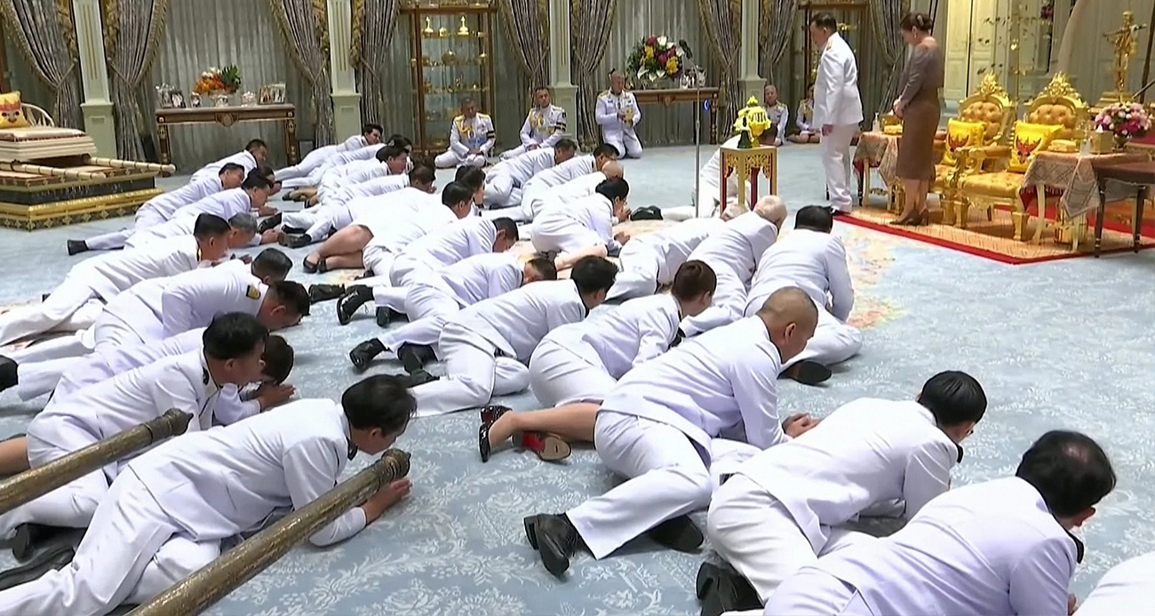 Tayland’da yeni hükümet törende Kral Vajiralongkorn ve Kraliçe Suthida’nın huzuruna çıktı. Başkent Bangkok’taki Dusit Sarayı’nda Çarşamba günü düzenlenen törende, başbakan ve aynı zamanda içişleri bakanı olarak görev yapacak olan Anutin Charnvirakul ile beraberindeki 36 üyeden oluşan kabine üyeleri, Kral Vajiralongkorn ve Kraliçe Suthida’nın huzurunda yemin ederek göreve başladı. Tayland geleneklerine uygun olarak gerçekleşen törende tüm kabine üyeleri, yere kapanarak Kral ve Kraliçe için saygı duruşunda bulundu.