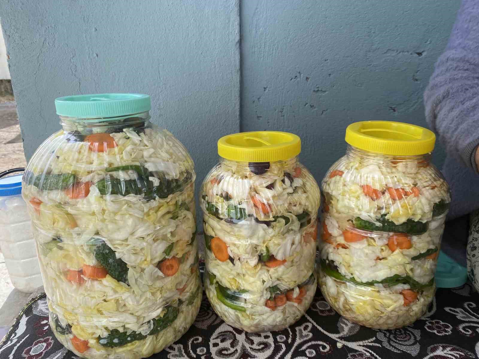 Ev hanımı Senem Yılkan, her yıl olduğu gibi bu yıl da kış mevsiminde tüketmek üzere turşu hazırladıklarını belirterek, “Kışın sofralarımızda doğal ürünler bulunsun diye lahanalarımızı getirip turşu kuruyoruz. İçine havuç, biber ve sirke ekliyoruz. Turşu hem lezzetli oluyor hem de bağışıklığı güçlendiriyor. Kış aylarında çorbanın, kuru fasulyenin yanına çok yakışıyor” dedi.