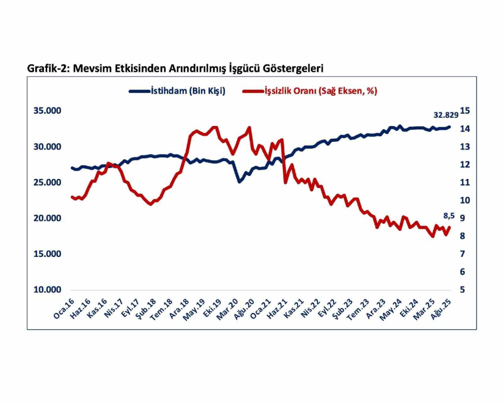 “İşsizlik oranı Ağustos ayında bir önceki aya göre 0,4 puan artışla yüzde 8,5 seviyesinde gerçekleşmiştir”