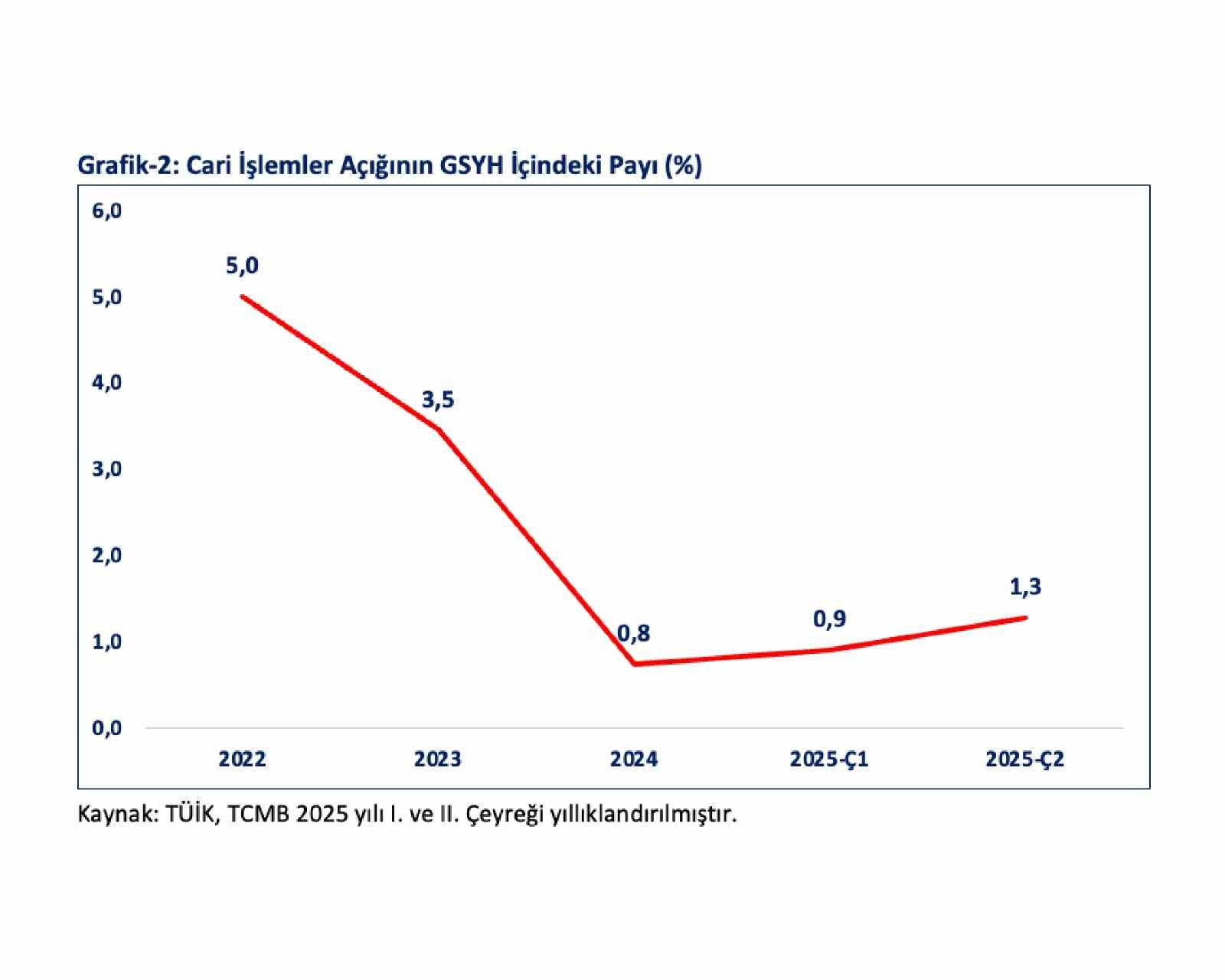 Bolat, 2022’de yüzde 5, 2023’te yüzde 3,5 ve 2024’te yüzde 0,8 olan cari işlemler açığının GSYH içindeki payının, 2025’in ikinci çeyreği itibariyle yıllıklandırılmış olarak yüzde 1,3 ile tarihsel ortalamasının altında seyretmeye devam ettiğine değinerek, “Kararlılıkla sürdürdüğümüz ekonomi programı sayesinde, küresel ve bölgesel belirsizliklere rağmen milli gelirdeki artış, cari işlemler açığındaki iyileşmeler, enflasyondaki düşüş, faiz oranlarındaki gerileme, kredi notlarındaki artışlar, risk primimizdeki gerileme, finansal istikrarı sağlama yönündeki adımlarımız, döviz rezervlerindeki artış ve toplumsal refahın adil dağılımı için sarf ettiğimiz çabalar, ekonomimizdeki dengelenme ve istikrar sürecini güçlendirmektedir” değerlendirmesinde bulundu.