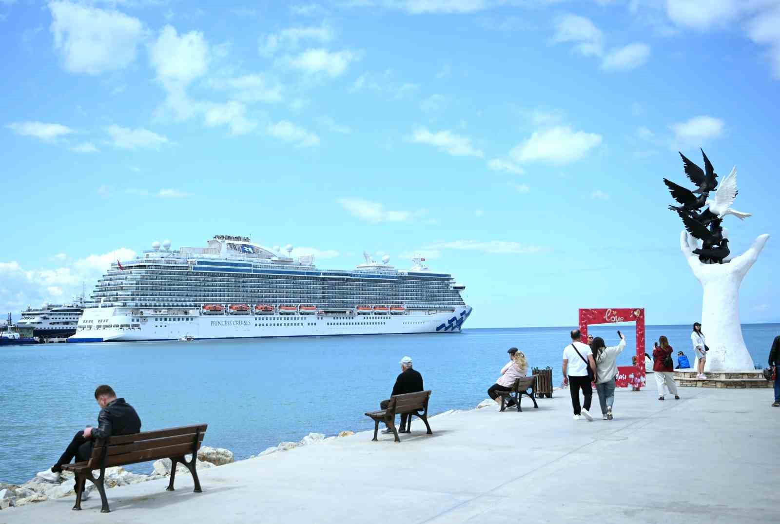 Aydın’ın Kuşadası ilçesine ilk kez gelen ’Majestic Princess’ isimli kruvaziyer, 3 bin 560 turist getirdi. Gemiden inen yolcuların bir bölümü tarihi ören yerlerini dolaşmak için turlara katılırken bir kısmı da kentin turistik çarşılarında alışveriş yapıp, esnafın yüzünü güldürdü.