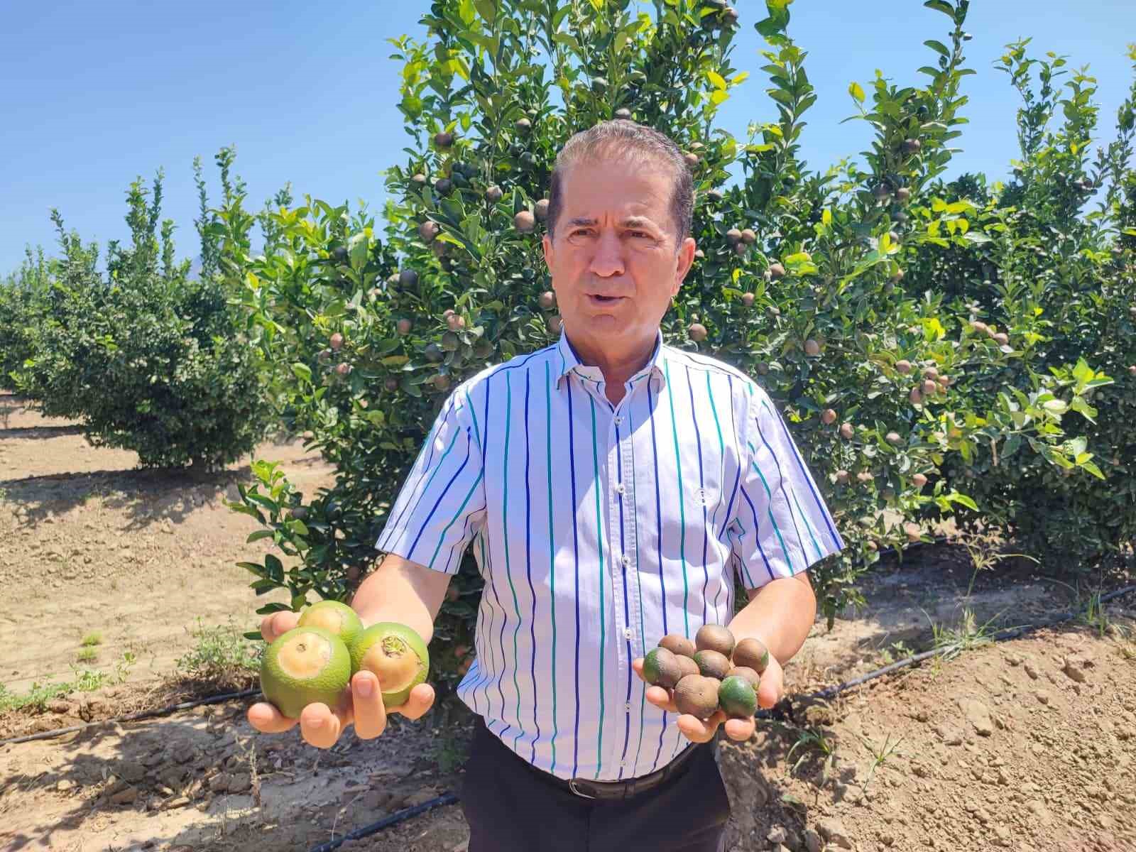 Türkiye’nin en sıcak illerinden Adana’da Meteoroloji Genel Müdürlüğü verilerine göre 9 Ağustos’ta hava sıcaklığı 47,5 derece olarak ölçüldü. Son 95 yılın en sıcak günü olarak kayda geçen 9 Ağustos’ta aşırı sıcaklar nedeniyle limon, portakal, mandalina gibi narenciye ürünlerinde güneş yanıkları oluştu. Şubat ve Nisan ayında don vurduğu için narenciyeler büyük zarar görürken şimdi de sıcaktan yanması nedeniyle hasat sırasında rekoltenin bazı ürünlerde düşmesi bekleniyor.