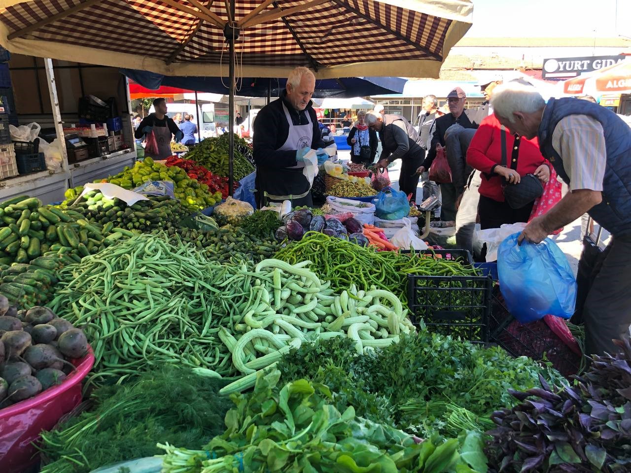 Kornişon, fasulye ve biber gibi sebzelerin alışverişini yapan vatandaşlar yaşanan yoğunluk nedeniyle pazar esnafını da memnun ediyor.