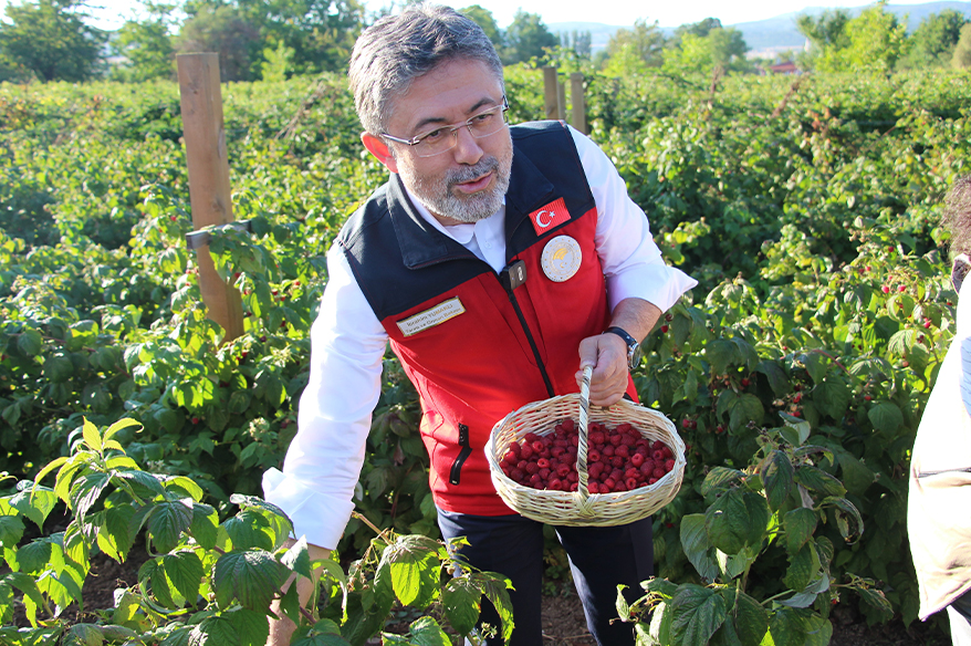 Bolu’daki üretim potansiyeline ve gençlerin tarıma kazandırılmasına dikkat çeken, Tarım ve Orman Bakanı İbrahim Yumaklı, “Burada üç yıl önce sadece altı dekarla başladı. Şu anda benim elimde, en son yılda on ton ahududu üretmeye başlamış. Yani dolayısıyla hem bilgisini, tecrübesini, heyecanını, sevgisini de katmış. Ben kendisini tebrik ediyorum. Bütün üreticilerimize canıgönülden teşekkür ediyorum. Yani burada biraz önce ablalarımızla da konuştuk. Onlar için de gündelik işlerinin dışında burada geçirdikleri birkaç günde harçlıklarını kazanma, buradan ek bir gelir elde etme imkanları da var. Bizim ülkemiz gerçekten dört bir tarafında, yedi bölgesinde çok kıymetli üretim yapılan bir ülke. Birçok sınamalarımız var elbette ama ondan daha da fazla potansiyelimiz var. Bizim bütün yapmamız gereken ve yapmayı amaçladığımız şey, bu potansiyeli harekete geçirmek. Bunun için genç kardeşlerimize ihtiyacımız var. Bakanlık olarak genç bir ekibimiz var. Üreticilerimiz olarak genç bir üretici kesimi oluşmaya başladı Türkiye’de. Etrafındaki bütün ekosisteme fayda sağlamaya başladı. Bütün bunları bir araya getirdiğimizde, hakikaten gıda arz güvenliği anlamında ülkemizin, hamdolsun, bundan sonraki yılları, dönemleri emin ellerdedir diye gönül rahatlığıyla söyleyebiliriz” ifadelerini kullandı.
