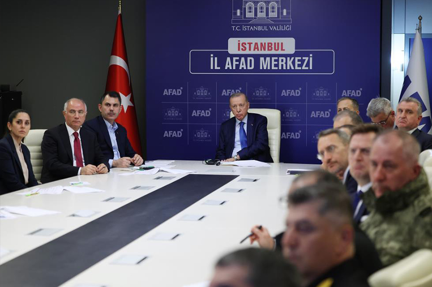 İstanbul İl Afet ve Acil Durum Müdürlüğünde bulunan kriz merkezini ziyaret eden Cumhurbaşkanı Erdoğan’a, Çevre, Şehircilik ve İklim Değişikliği Bakanı Murat Kurum, Gençlik ve Spor Bakanı Osman Aşkın Bak, İçişleri Bakanı Ali Yerlikaya, Sağlık Bakanı Kemal Memişoğlu, İstanbul Valisi Davut Gül ve yetkililer tarafından detaylı bilgi verildi.