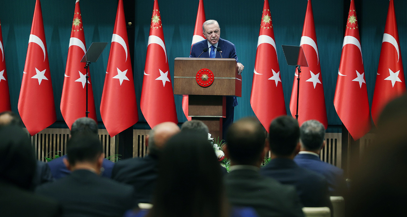 “Hükümet olarak bölgedeki barış için çabalarken, kendi içimizde huzuru zedeleyen, milli birlik ve beraberliğimizi örseleyen, şer güçlere istismar zemini sunan sorunların üzerine de kararlılıkla gidiyoruz” diyen Cumhurbaşkanı Erdoğan, “Terörsüz Türkiye süreci, sadece Cumhur İttifakı’nın değil aynı zamanda hükümetimizin, devletimizin, hepsinden önemlisi milletimizin projesidir. 86 milyonun tamamının özlemi, beklentisi, hayalidir. Bu hayalin adım adım gerçeğe dönüşmekte olduğunu görüyoruz. Şunu bir kere daha önemle ifade ediyorum: Kimsenin endişesi olmasın; evelallah girdiğimiz bu yol bizi demokrasisiyle de, ekonomisiyle de güçlü bir Türkiye’ye ulaştıracaktır. Yolun sonunda kardeşlik vardır, kalkınma vardır; barış, huzur, dayanışma ve istikbali birlikte inşa etme iradesi vardır. Dolayısıyla sorumluluklarımızın ne kadar büyük olduğunu biliyoruz. Bunun için ne umut tacirliği, ne de muhalefet gibi ucuz popülizm yapıyoruz. Devlet ciddiyetine, bulunduğumuz makamın ağırlığına ve itibarına yakışır şekilde bu yolda itinayla ilerliyoruz. Milletimiz de bizim bu çabalarımızı, hasbi ve harbi mücadelemizi yakından görmekte, menzile kazasız-belasız varmamız için dua etmektedir” açıklamasını yaptı.