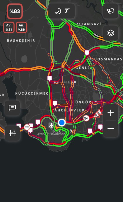İstanbul’da akşam iş çıkış saatlerinde trafik yoğunluğu yüzde 83’e ulaştı. Vatandaşlar evlerine gitmekte zorluk yaşarken D-100 Karayolu’nda araç kuyrukları oluştu.