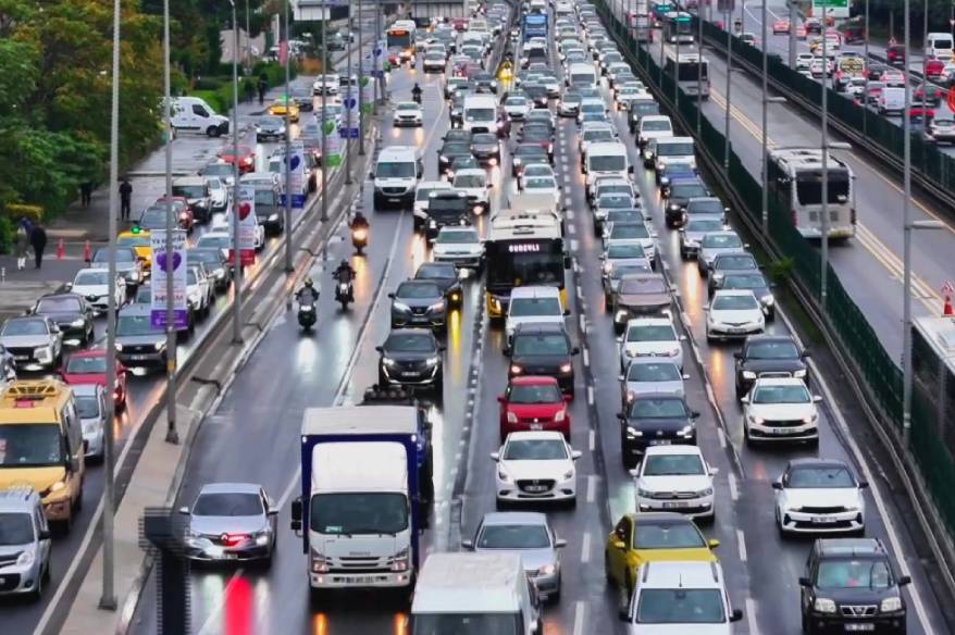 İstanbul’da gece saatlerinde etkisini gösteren ve sabah saatlerinde de devam eden yağış nedeniyle trafik yoğunluğu yaşandı. Haftanın ilk iş gününde İstanbul Büyükşehir Belediyesi (İBB) trafik yoğunluk haritası verilerine göre, il genelindeki yoğunluk yüzde 81 olarak ölçüldü. Yoğunluk nedeniyle araçlar ilerlemekte zorluk çekerken, trafik zaman zaman durma noktasına geldi. Yaşanan yoğunluk Yenibosna E-5 mevkiinden ve Çağlayan 15 Temmuz Şehitler Köprüsü istikametinden görüntülendi. Öte yandan, Yenibosna E-5 mevkiinde meydana gelen trafik yoğunluğu havadan çekilen görüntülere yansıdı.