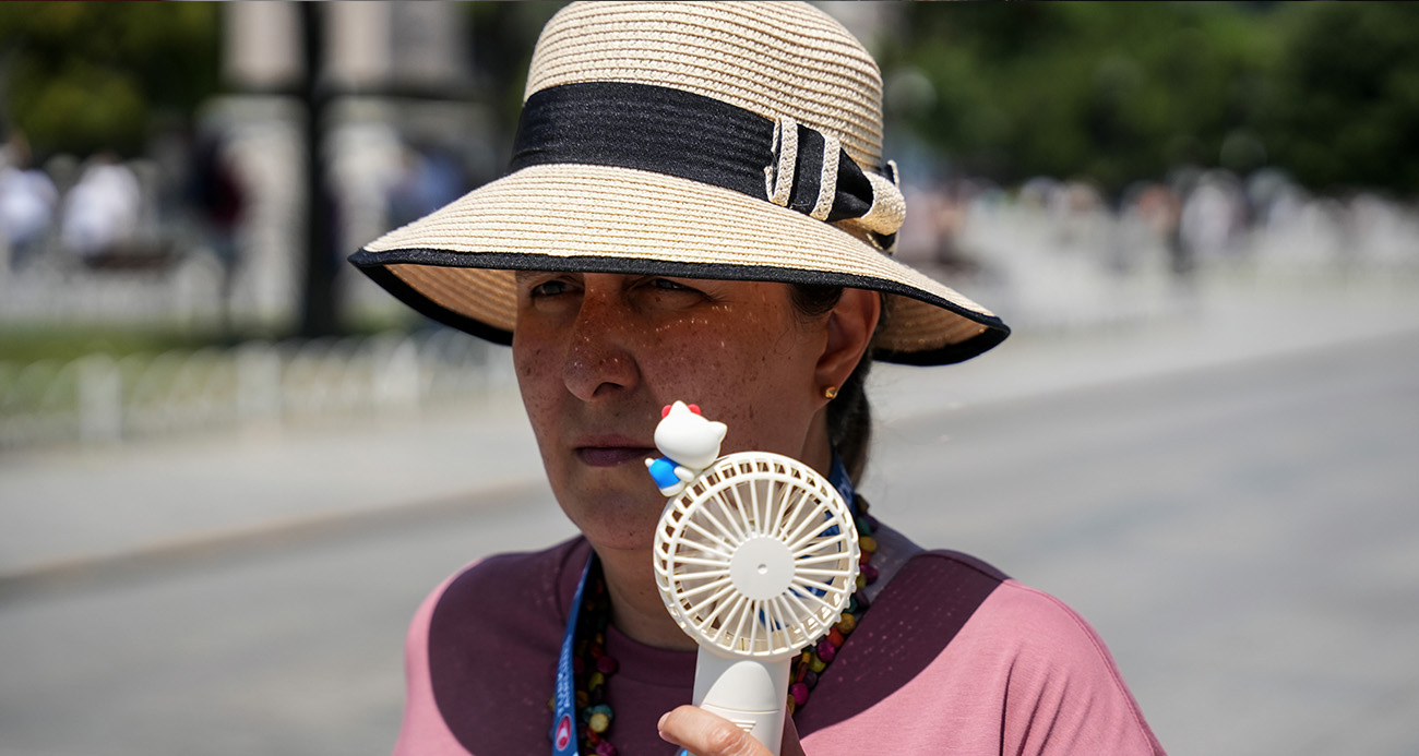 İstanbul’da termometreler 42 dereceyi gördü. Kavurucu sıcaklarda turistler çareyi ‘el vantilatörleriyle’ gezmekte buldu.