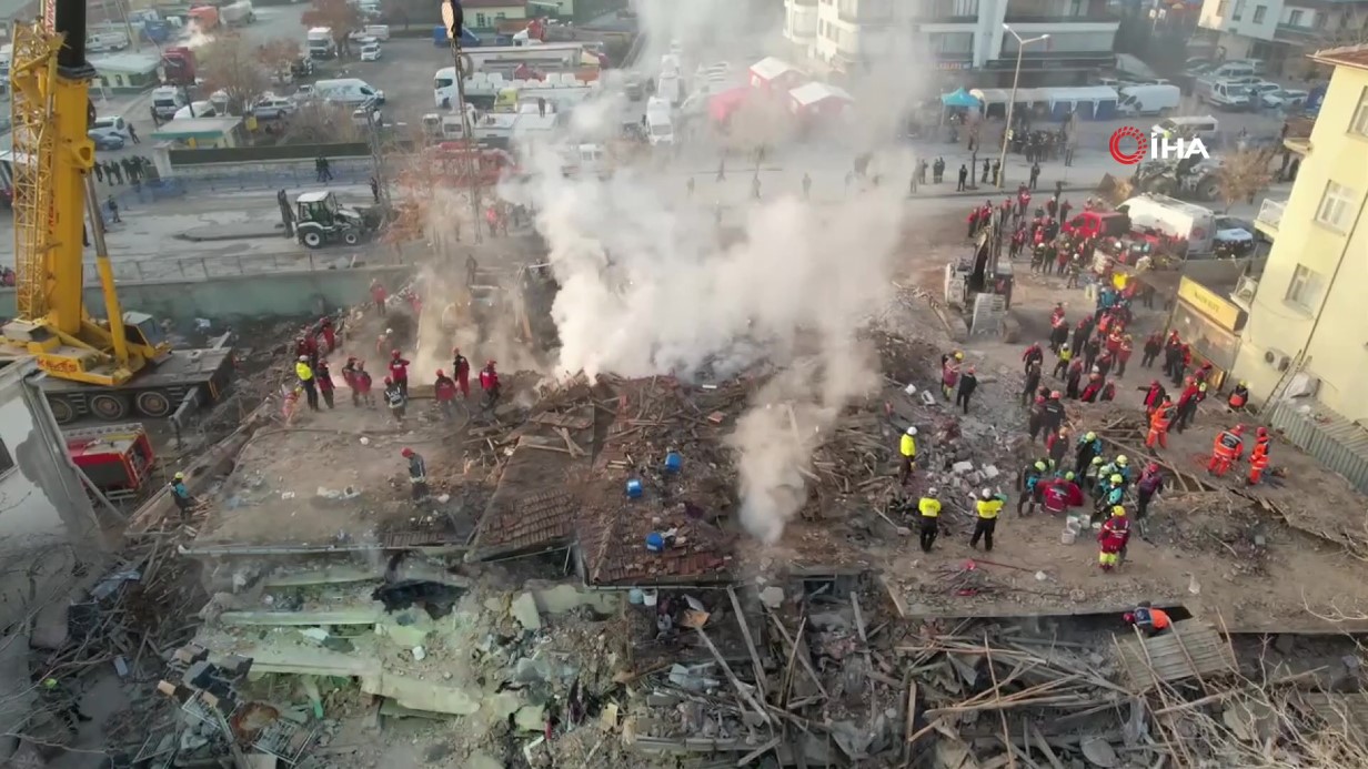 Konya’da çöken binanın enkazı günün ilk ışıklarıyla böyle görüntülendi