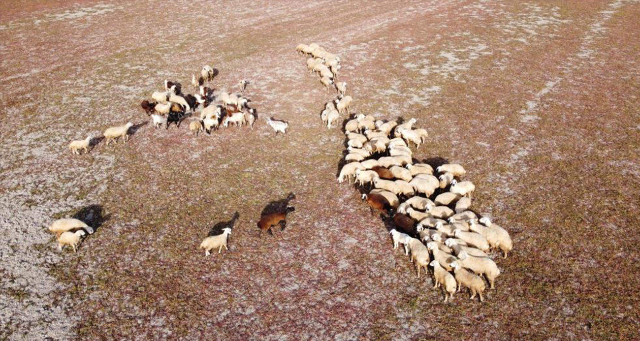 Dron kamerasıyla kaydedilen görüntülerde, Gelingüllü Barajı’nın büyük oranda kuruduğu ve ortaya çıkan geniş alanlarda koyun sürülerinin otlatıldığı görüldü. Kuraklığın şiddetini gözler önüne seren görüntülerde, baraj havzasındaki çatlamış toprak ve hayvanların yayıldığı alan dikkat çekti.