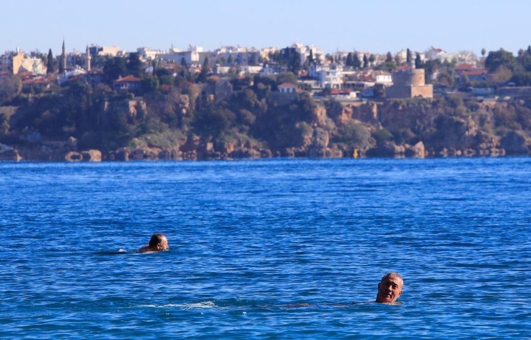 Aralık ayının son haftasında Türkiye’de birçok ilde yoğun kar yağışı ve sert kış şartları etkisini gösterirken Antalya’da karla kaplı dağların gölgesinde kent sakinleri ve yabancı turistler, su sıcaklığının 20 derece olarak ölçüldüğü Konyaaltı’nda denize girmenin keyfini çıkardı.