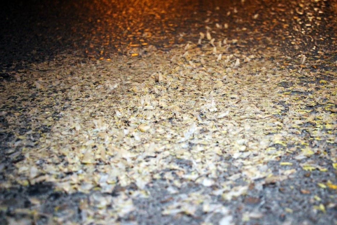 Aydınlatma direklerinin çevresinde toplanan binlerce sineğin ‘ölüm dansı’ gerçekleşti. Her yıl tekrarlanan ve birgün sineklerinin adeta kar yağışını anımsatan ‘ölüm uçuşu’ görsel şölen oluşturdu.