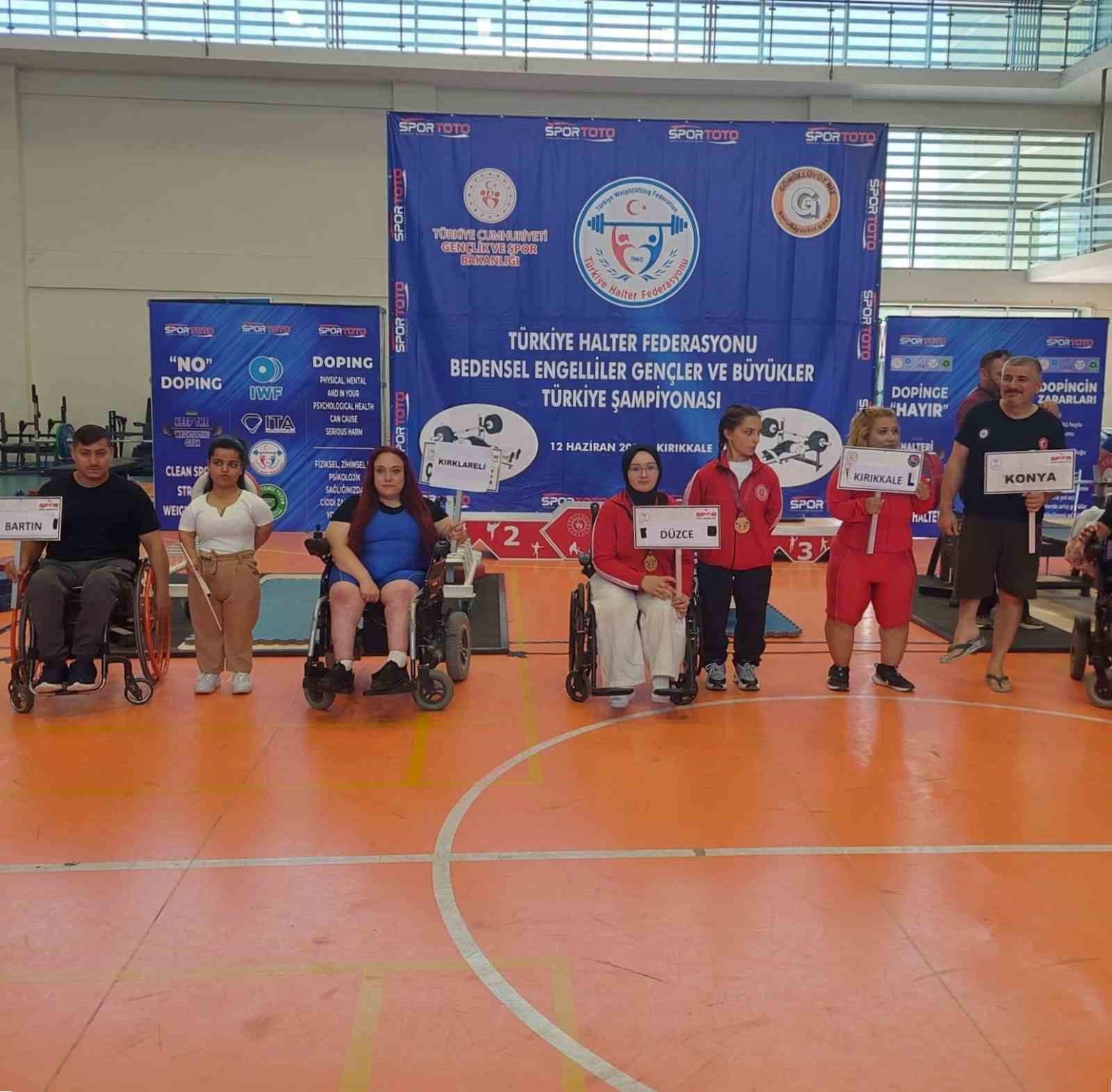 Kırıkkale’de gerçekleştirilen Bedensel Engelliler Büyükler-Gençler Halter Türkiye Şampiyonası 63 sporcunun katılımı ile tamamlandı. Müsabakalar sonunda Düzceli başarılı sporcuları Sude Naz Özen 45 kg’da birinci ve Elif Nur Babur 67 kg’da birinci olarak 2 altın madalya kazandı.