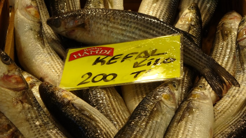 “Hamsi ve istavritin kilosu bir iki ay önce de 250 liraydı, şu anda da 250 lira. Balık fiyatlarında çok büyük bir yükselme yok. Sadece trol ile yakalanan tekir ve barbun gibi türlerde, serme ağ usulüne geçildiği için az yakalanıyor ve fiyatlar yukarıya çıkıyor. Bu da arz-talep meselesi. Sardalya da kilosu 250 liradan alıcı buluyor. İstavritin biraz irisi ise kilosu 300 lira. Zargana, mezgit ve Karadeniz mezgiti de kilosu 500 lira ama onlar yine trolle yakalanan balık olduğu için fiyatları bu şekilde. Çupra ve levreklerin fiyatları aynı. Somon 450 liraydı, 400 liraya düştü. Bu mevsimin balıkları var. Mesela isparoz 300 lira. Bu mevsimde yenmesi gereken, sürekli bu dönemde çıkan çok lezzetli balıklarımız var; isparoz, izmarit, mercan, kefal gibi. Bakın eşkina da orijinal deniz balığıdır, kilosu 550 lira. Lezzetine doyamazsınız. Karadeniz’in meşhur balığıdır ama Ege’de, İzmir’de ve Marmara’da da çıkar.”
