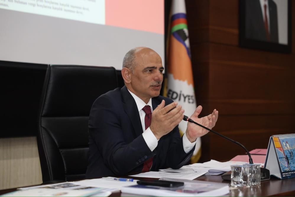 Tasarruf tedbirlerinin gölgesinde geçen bir yıl oldu” diyen Başkan Söğüt, “Elimizden geldiği kadar bu adımları atarken bu bakış açımızla belki başka projelerimizi daha sonraki yıllara aktarmak zorunda kaldık. Ama özellikle 5 ana amaç ve bunlara bağlı 31 hedef ve bu hedeflere bağlı 158 performans göstergemizde her bir ilgili müdürlük çalışanlarımız gayret gösterdiler ve dolu dolu geçirdik. 12 yeni iş makinesi aldık. Buradaki muradımız iş makinesi sayımızı arttırarak hizmet kalitesini arttırmak. Bu 60 milyon TL’lik bir yatırım. İlimtepe Millet Bahçesi şu an devam ediyor. Büyük ölçüde tamamlandı. Mahallelerimizde 7 halı saha kazandırdık. Körfez Kent’te çok güzel spor kompleksi yaptık. 2024 yılında 24 milyon değerinde ayni ve nakdi yardımda bulunduk. Devletimizin belirlediği kriterlere uyan tüm vatandaşlarımıza destek sunduk. Dolu dolu bir 2024 yılı geçirdik. 2025 yılında daha büyük hizmetleri hep beraber Körfezimize kazandırmaya devam edeceğiz” şeklinde konuştu.