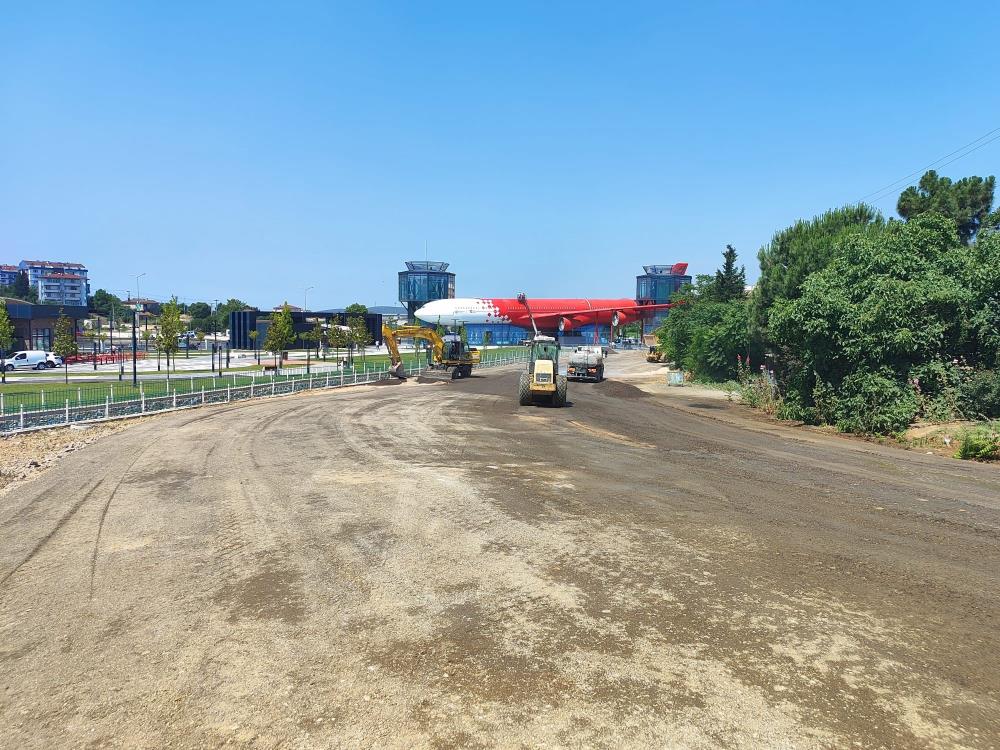Büyükşehir Belediyesi, uçuş ömrünü tamamladığı ‘Airbus A340′ tipi yolcu uçağının bulunduğu alanda projelendirdiği Çayırova Bilim Parkı’nda zemin ve otopark alanında asfalt serim çalışmaları yapıyor.