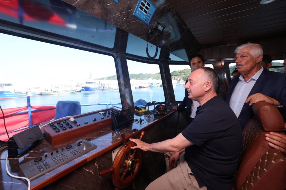 Konuşmaların ardından Kandıra Müftüsü Adem Gülmek’in yaptırdığı dua ile balıkçı teknesine binen Büyükakın ve beraberindekiler, Karadeniz’e açılarak yeni sezonu karşıladı. Büyükakın, gezi sırasında bir süre teknenin dümenine de geçti.