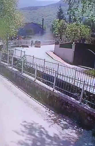 Kaza anı, çevredeki bir güvenlik kamerasına yansıdı. Görüntüde, çarpışmanın şiddetiyle motosiklet sürücüsünün savrulduğu, taksi sürücüsünün de araçtan inerek yaralının yardımına gittiği anlar yer aldı.