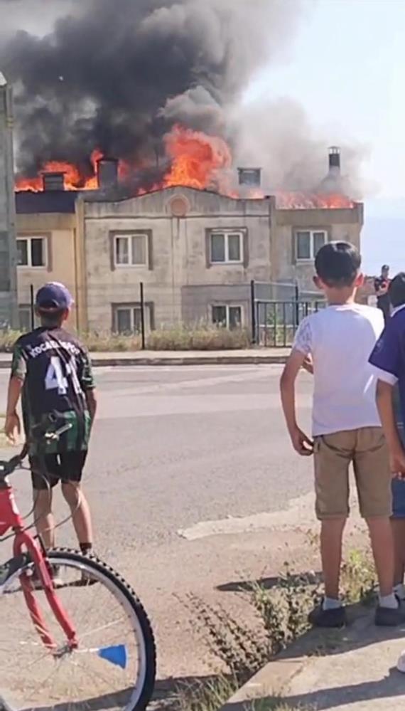 Kocaeli’nin Körfez ilçesinde tamiratı yapılan çatı, alev alev yandı.